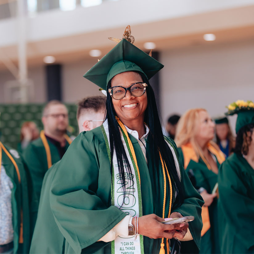 Two commencement ceremonies will be held at 10 a.m. and at 2 p.m. You’ll participate in the commencement ceremony based on your degree / certificate program. Check your Self-Service account under My Progress to see your degree or certificate.